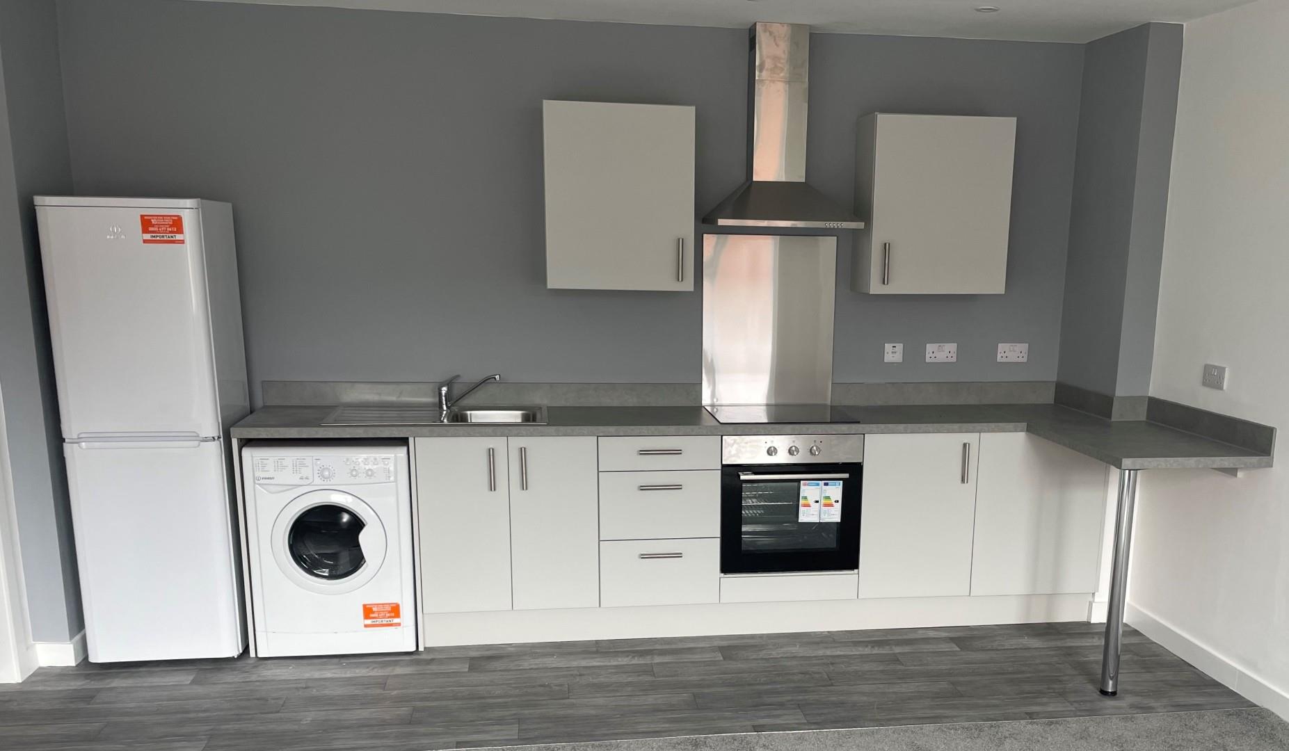 The property has open plan living space with kitchen including appliances consisting of oven, hob, hood, fridge/freezer and washer/dryer. Shower room,, two double bedrooms and new carpet fitted throughout